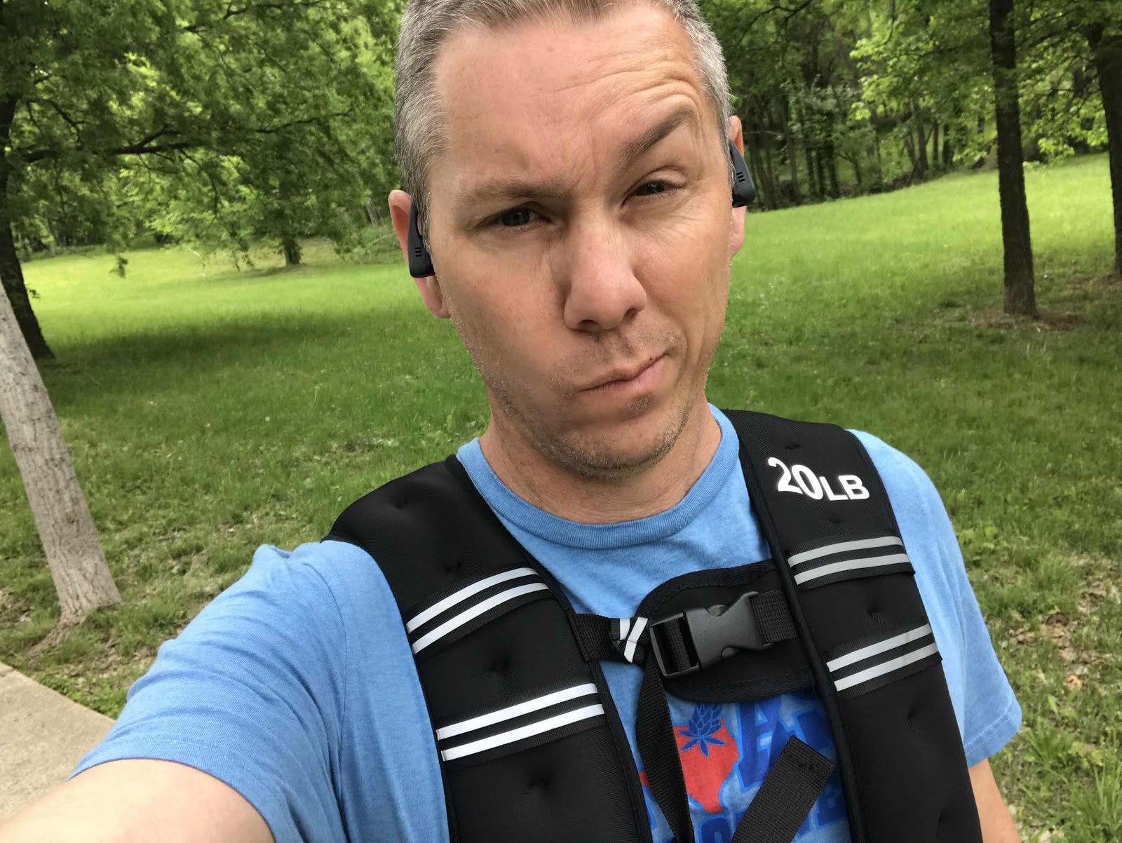 Now comes the attempt to hill train in the flatlands of Texas. I started out on a incline treadmill plan, but I didn't feel like it really helped a great deal. The treadmill gave me the temptation/option to hold onto the side rails or lean forward and hang on. Which is why I ordered this puppy. They say that it helps simulate hill climbing. We'll see... I decided to start out easy until I build some strength. I did a 2 mile walk followed by a 1 mile run. The run portion felt similar to the end of a half marathon. Everything just felt heavy. As it should carry 20 extra pounds.